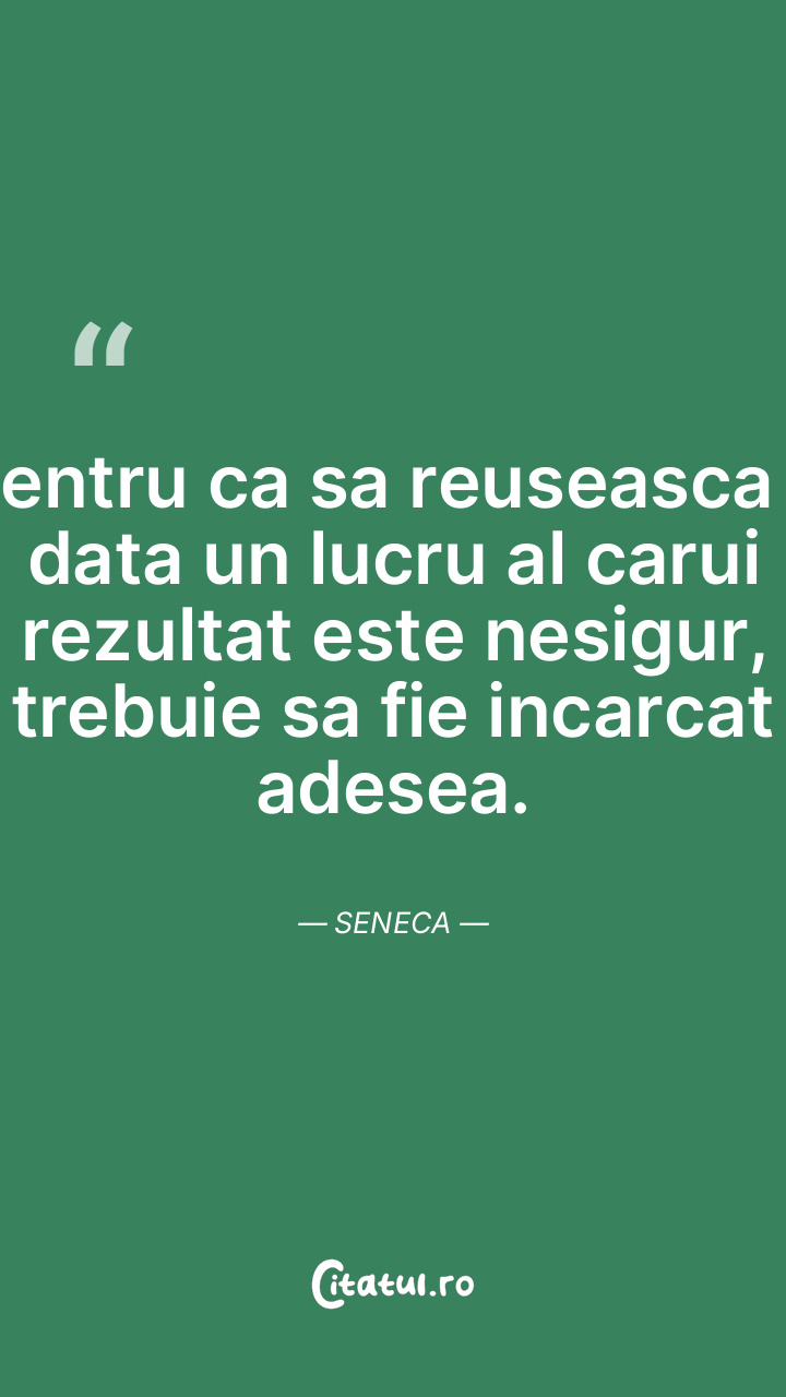 Pentru ca sa reuseasca o data un lucru al carui rezultat este nesigur, trebuie sa fie incarcat adesea. Seneca