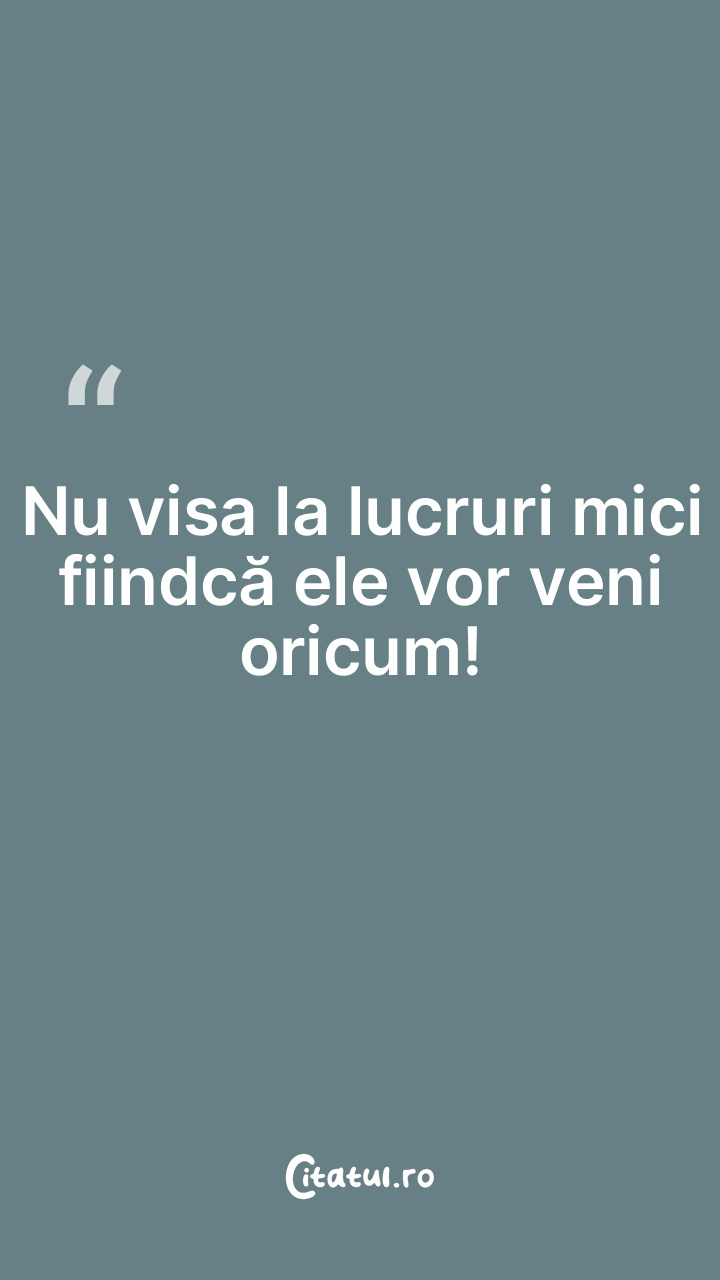 Nu visa la lucruri mici fiindcă ele vor veni oricu...