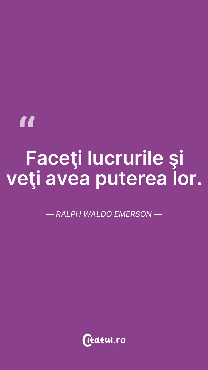 Faceţi lucrurile şi veţi avea puterea lor. Ralph Waldo Emerson
