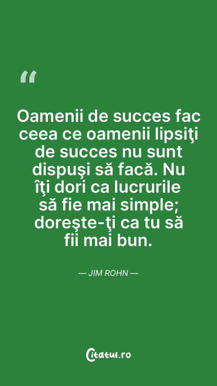 Oamenii de succes fac ceea ce oamenii lipsiţi de succes nu sunt dispuşi să facă. Nu îţi dori ca lucrurile să fie mai simple; doreşte-ţi ca tu să fii mai bun. Jim Rohn