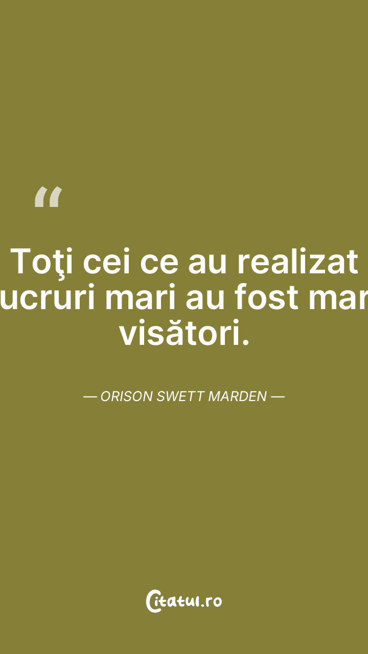 Toţi cei ce au realizat lucruri mari au fost mari visători. Orison Swett Marden
