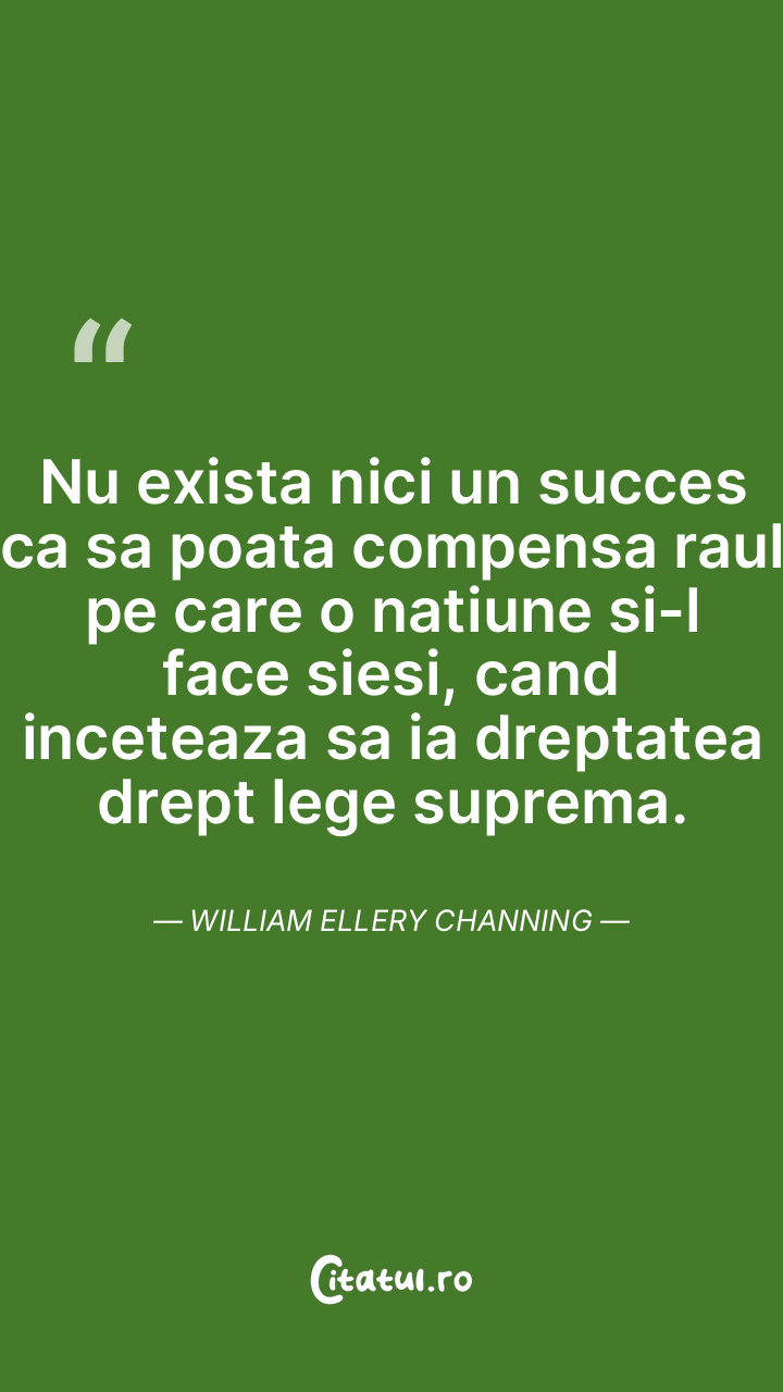 Nu exista nici un succes ca sa poata compensa raul pe care o natiune si-l face siesi, cand inceteaza sa ia dreptatea drept lege suprema. William Ellery Channing