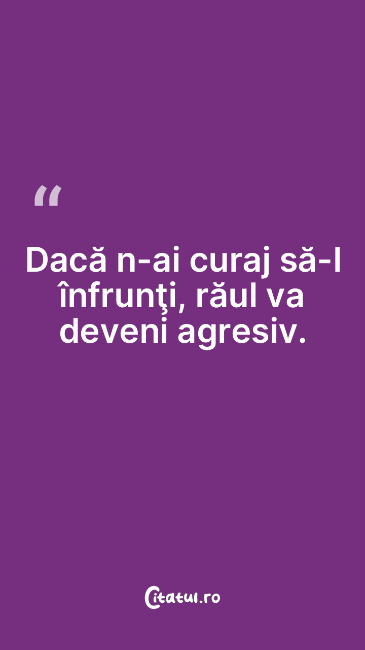 Dacă n-ai curaj să-l înfrunţi, răul va deveni agresiv.