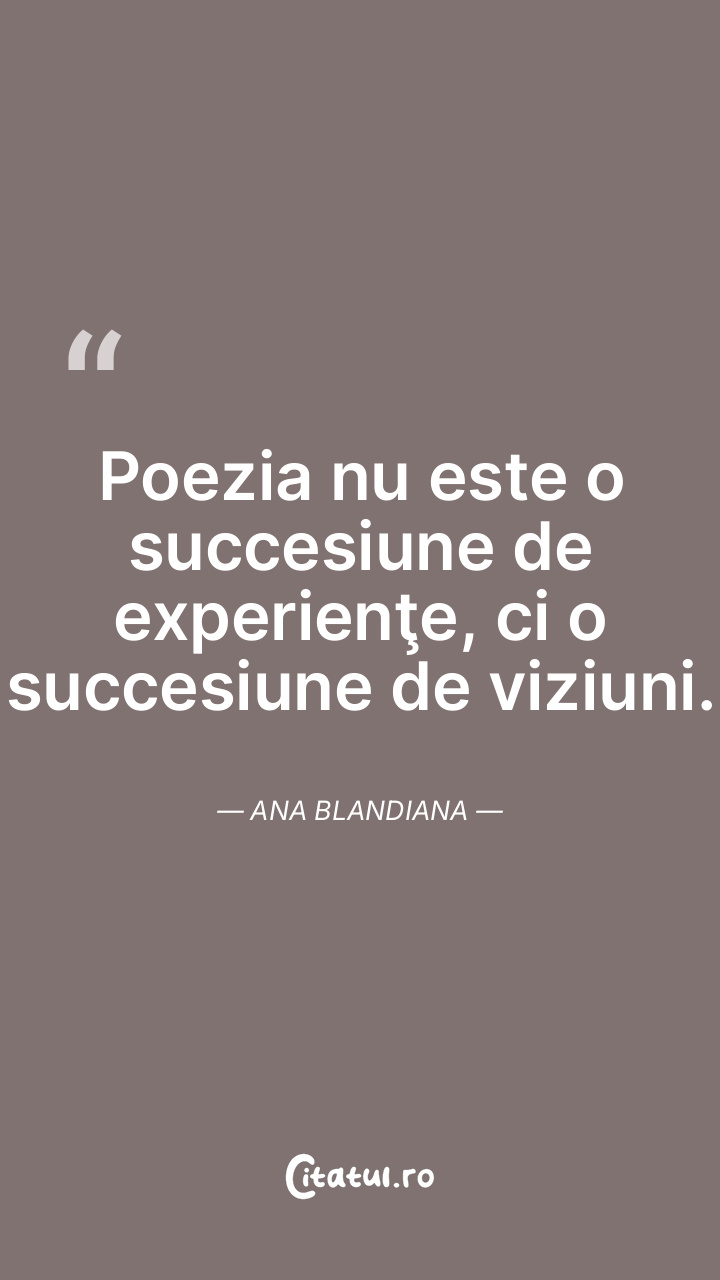 Poezia nu este o succesiune de experienţe, ci o succesiune de viziuni. Ana Blandiana