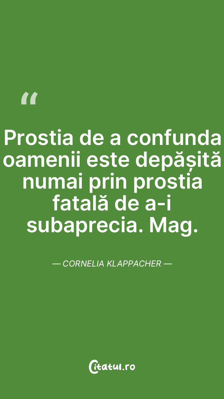Prostia de a confunda oamenii este depășită numai prin prostia fatală de a-i subaprecia. Mag. Cornelia Klappacher