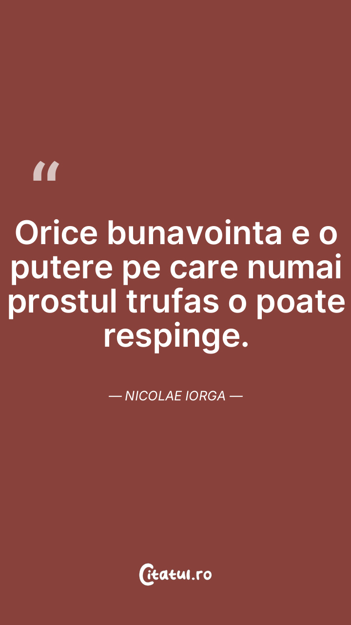 Orice bunavointa e o putere pe care numai prostul trufas o poate respinge. Nicolae Iorga