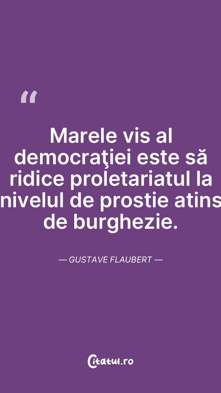 Marele vis al democraţiei este să ridice proletariatul la nivelul de prostie atins de burghezie. Gustave Flaubert