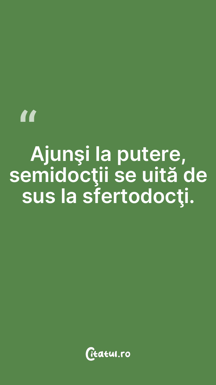 Ajunşi la putere, semidocţii se uită de sus la sfertodocţi.