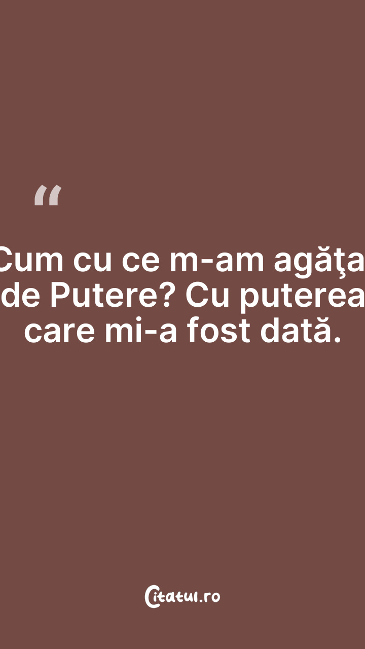 Cum cu ce m-am agăţat de Putere? Cu puterea care mi-a fost dată.