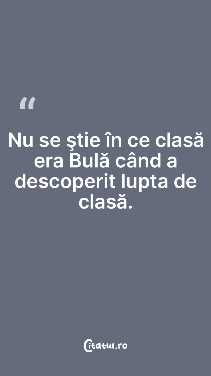 Nu se ştie în ce clasă era Bulă când a descoperit lupta de clasă.