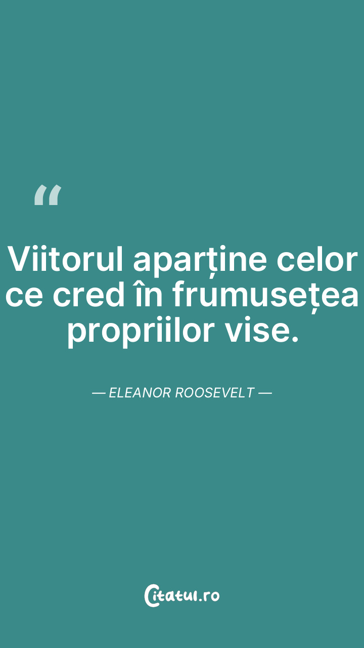 Viitorul aparține celor ce cred în frumusețea propriilor vise. Eleanor Roosevelt