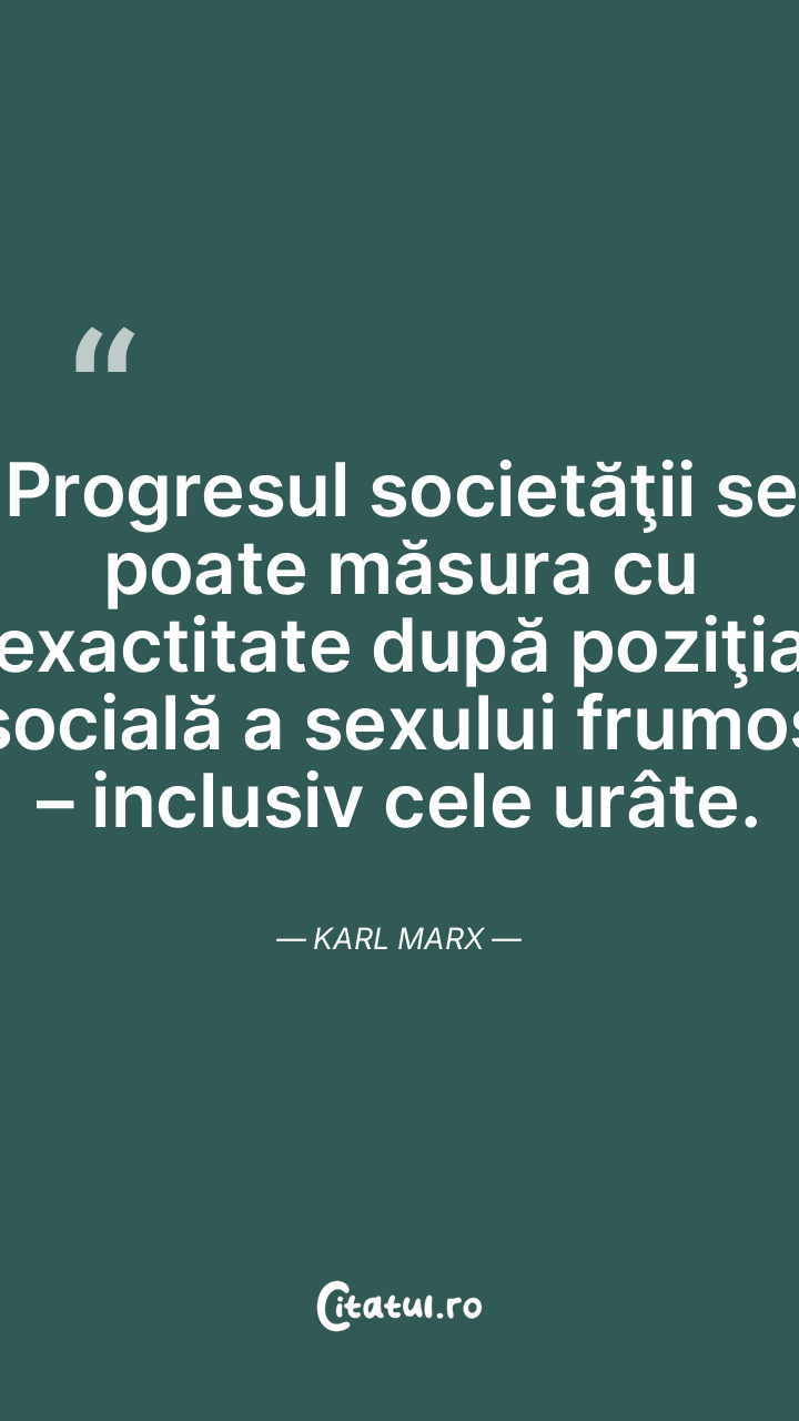 Progresul societăţii se poate măsura cu exactitate după poziţia socială a sexului frumos – inclusiv cele urâte. Karl Marx