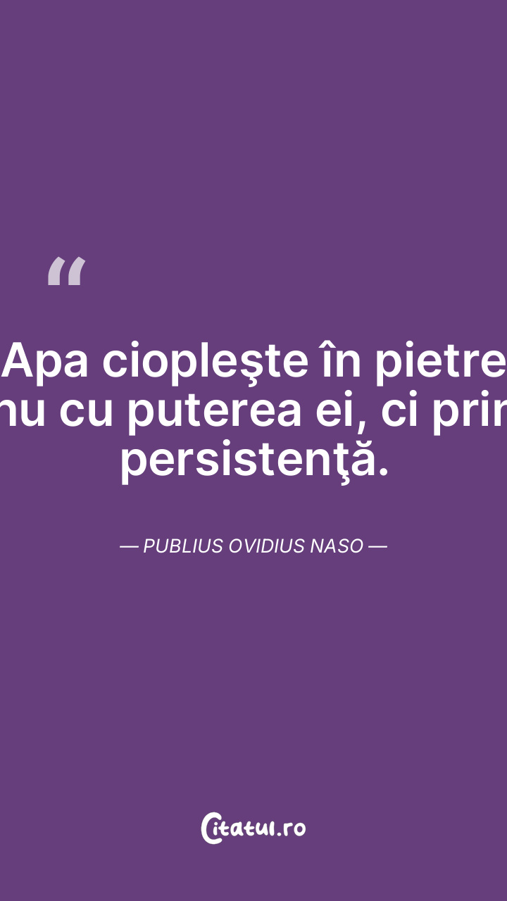 Apa ciopleşte în pietre nu cu puterea ei, ci prin persistenţă. Publius Ovidius Naso