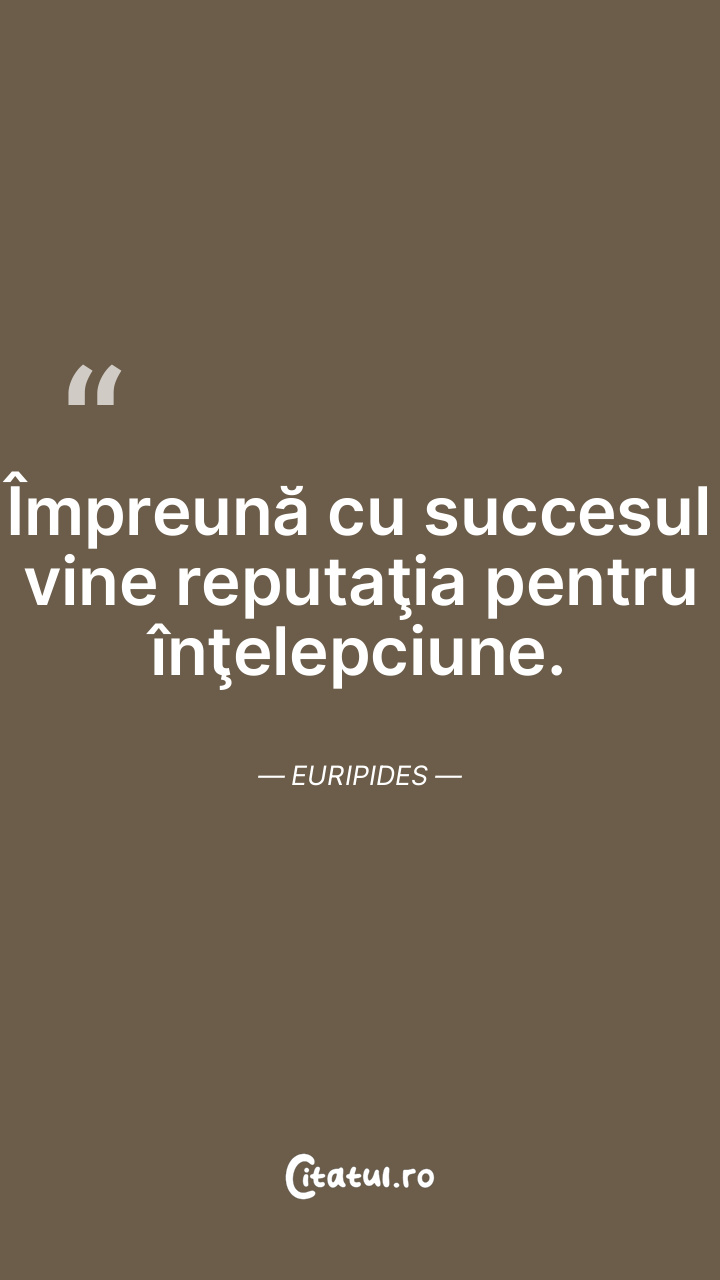 Împreună cu succesul vine reputaţia pentru înţelepciune. Euripides