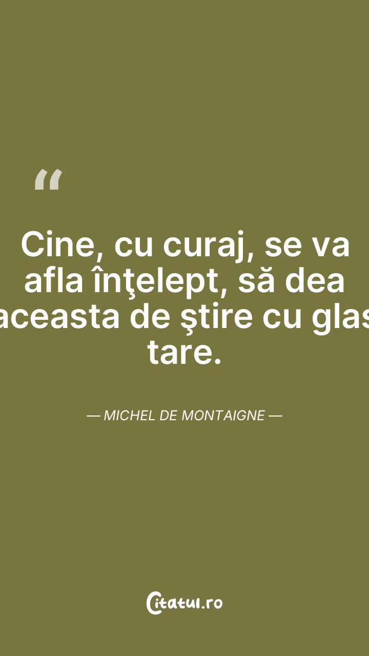 Cine, cu curaj, se va afla înţelept, să dea aceasta de ştire cu glas tare. Michel de Montaigne