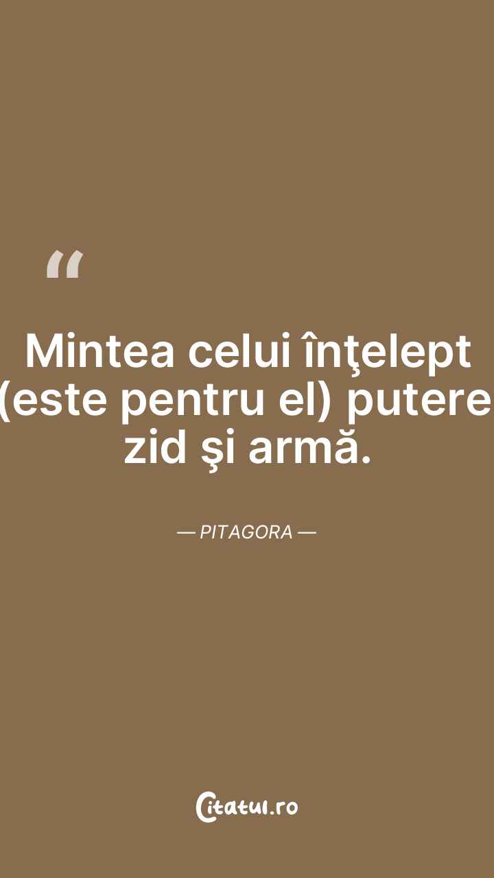 Mintea celui înţelept (este pentru el) putere, zid şi armă. Pitagora
