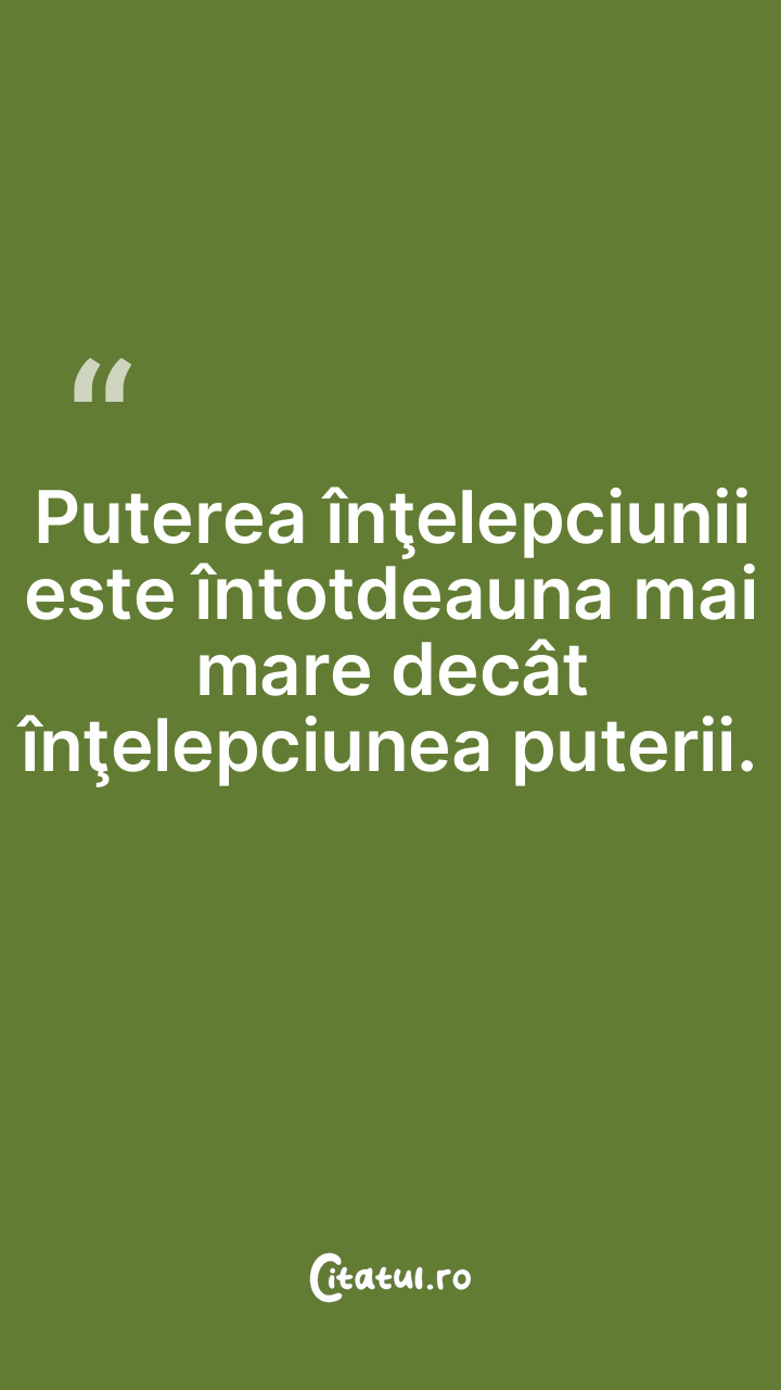 Puterea înţelepciunii este întotdeauna mai mare de...