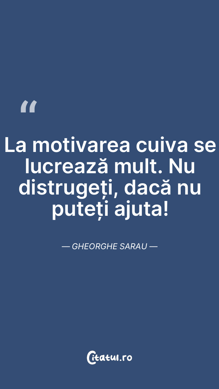 La motivarea cuiva se lucrează mult. Nu distrugeți, dacă nu puteți ajuta! Gheorghe Sarau