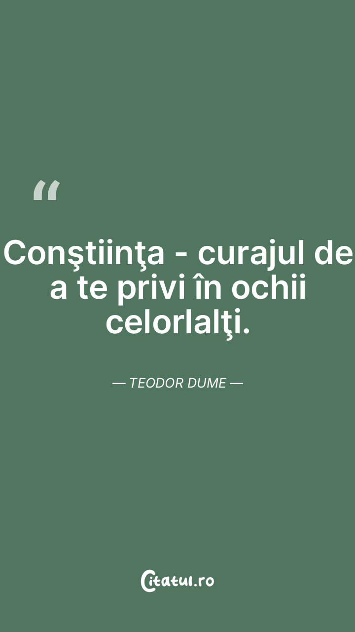 Conştiinţa - curajul de a te privi în ochii celorlalţi. Teodor Dume