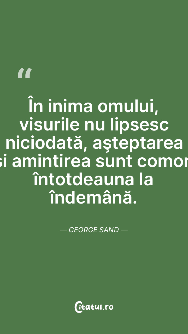În inima omului, visurile nu lipsesc niciodată, aşteptarea şi amintirea sunt comori întotdeauna la îndemână. George Sand