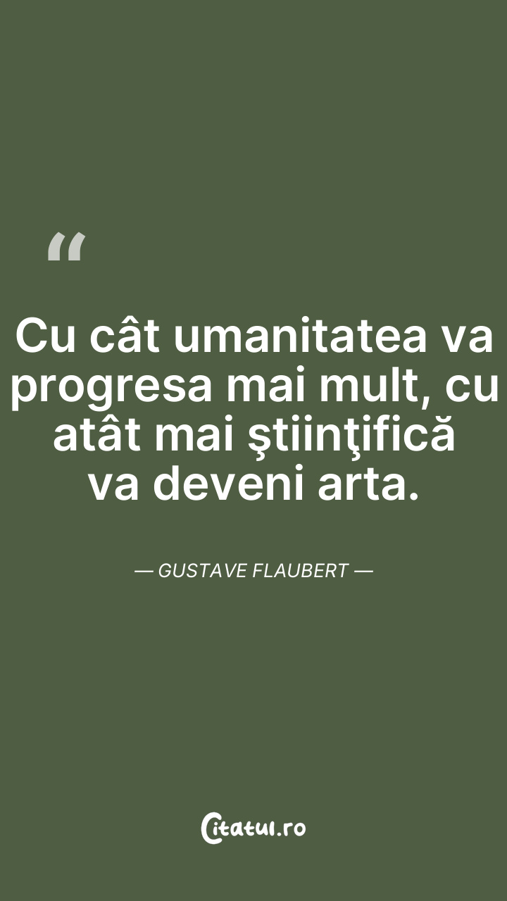 Cu cât umanitatea va progresa mai mult, cu atât mai ştiinţifică va deveni arta. Gustave Flaubert