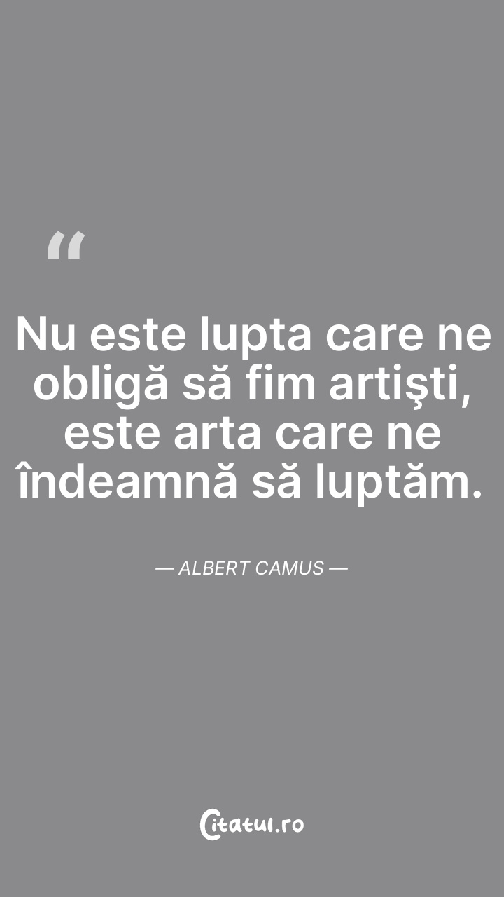 Nu este lupta care ne obligă să fim artişti, este arta care ne îndeamnă să luptăm. Albert Camus