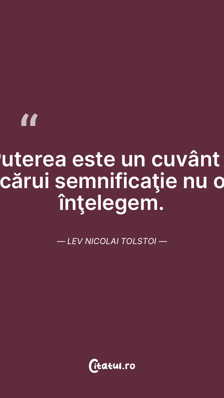 Puterea este un cuvânt a cărui semnificaţie nu o înţelegem. Lev Nicolai Tolstoi