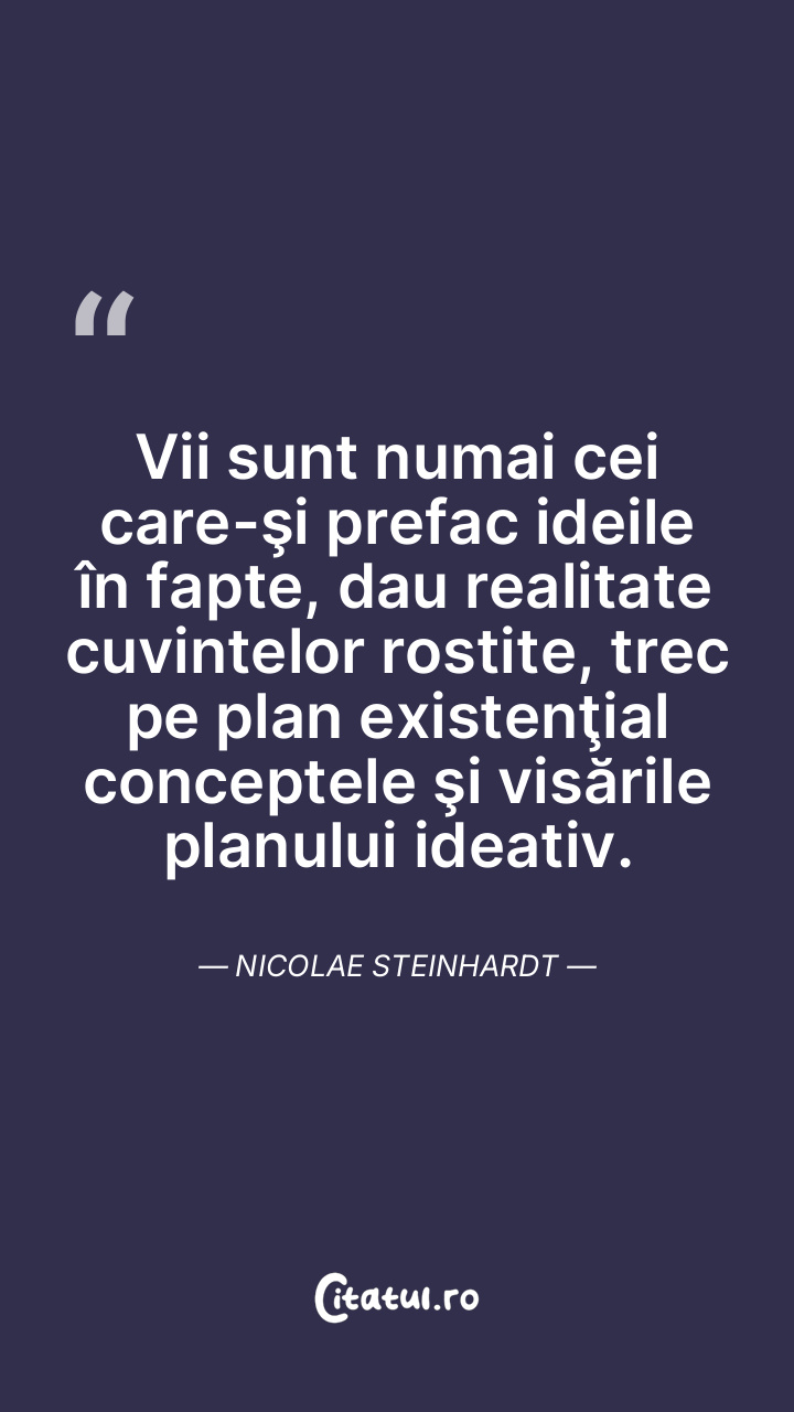 Vii sunt numai cei care-şi prefac ideile în fapte, dau realitate cuvintelor rostite, trec pe plan existenţial conceptele şi visările planului ideativ. Nicolae Steinhardt