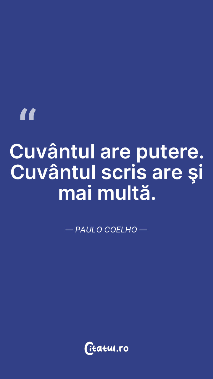 Cuvântul are putere. Cuvântul scris are şi mai multă. Paulo Coelho
