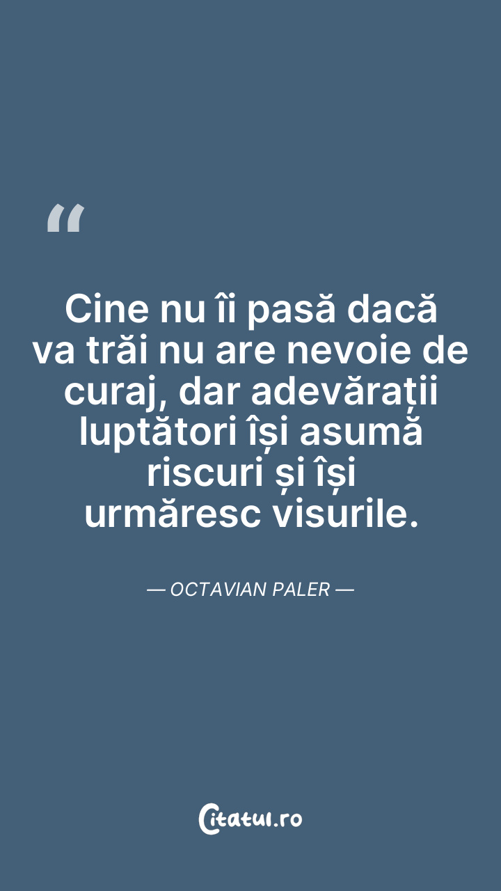 Cine nu îi pasă dacă va trăi nu are nevoie de curaj, dar adevărații luptători își asumă riscuri și își urmăresc visurile. Octavian Paler