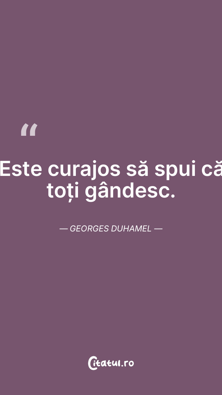 Este curajos să spui că toți gândesc. Georges Duhamel