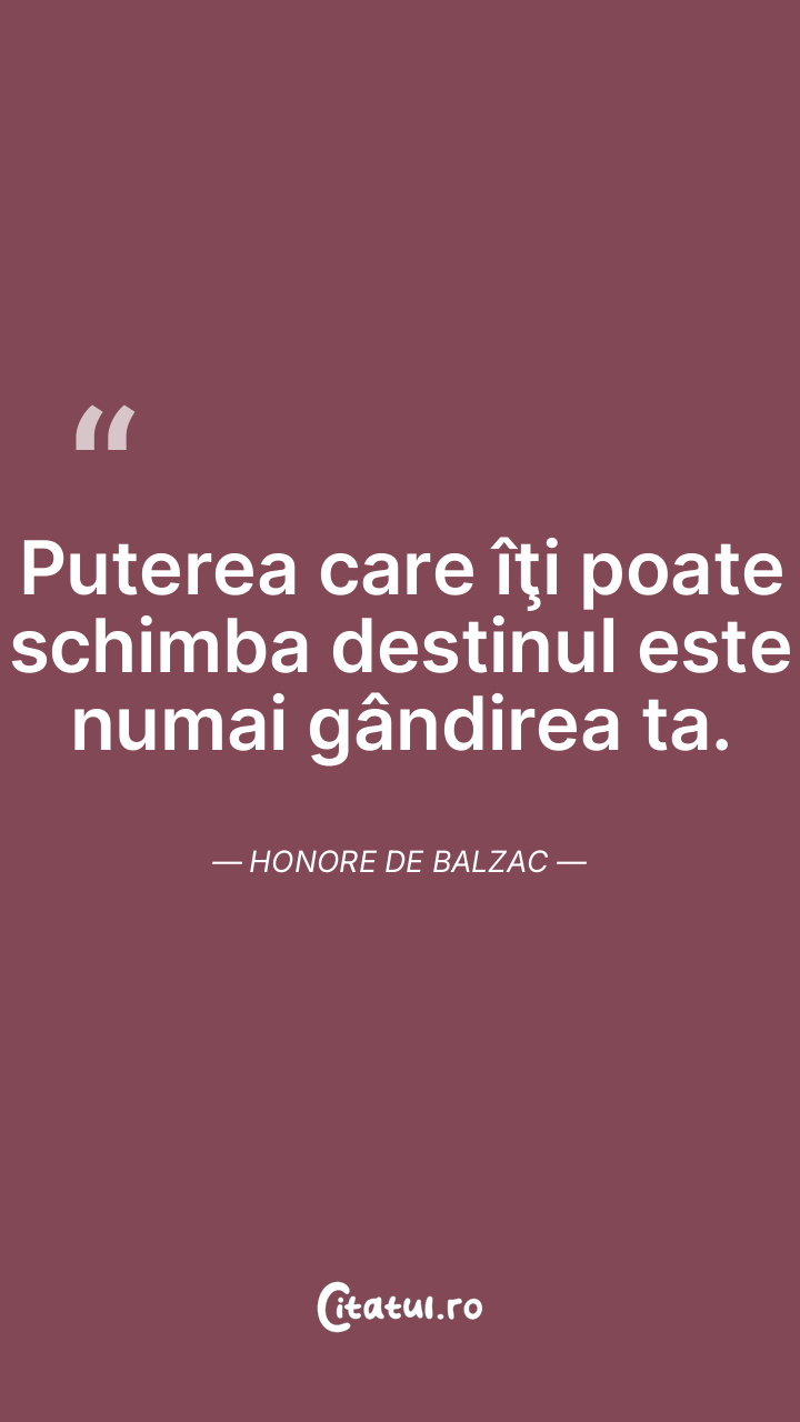 Puterea care îţi poate schimba destinul este numai gândirea ta. Honore de Balzac