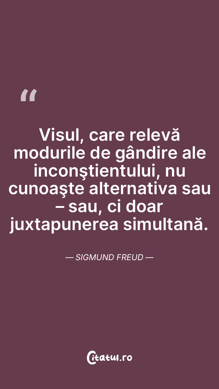 Visul, care relevă modurile de gândire ale inconştientului, nu cunoaşte alternativa sau – sau, ci doar juxtapunerea simultană. Sigmund Freud