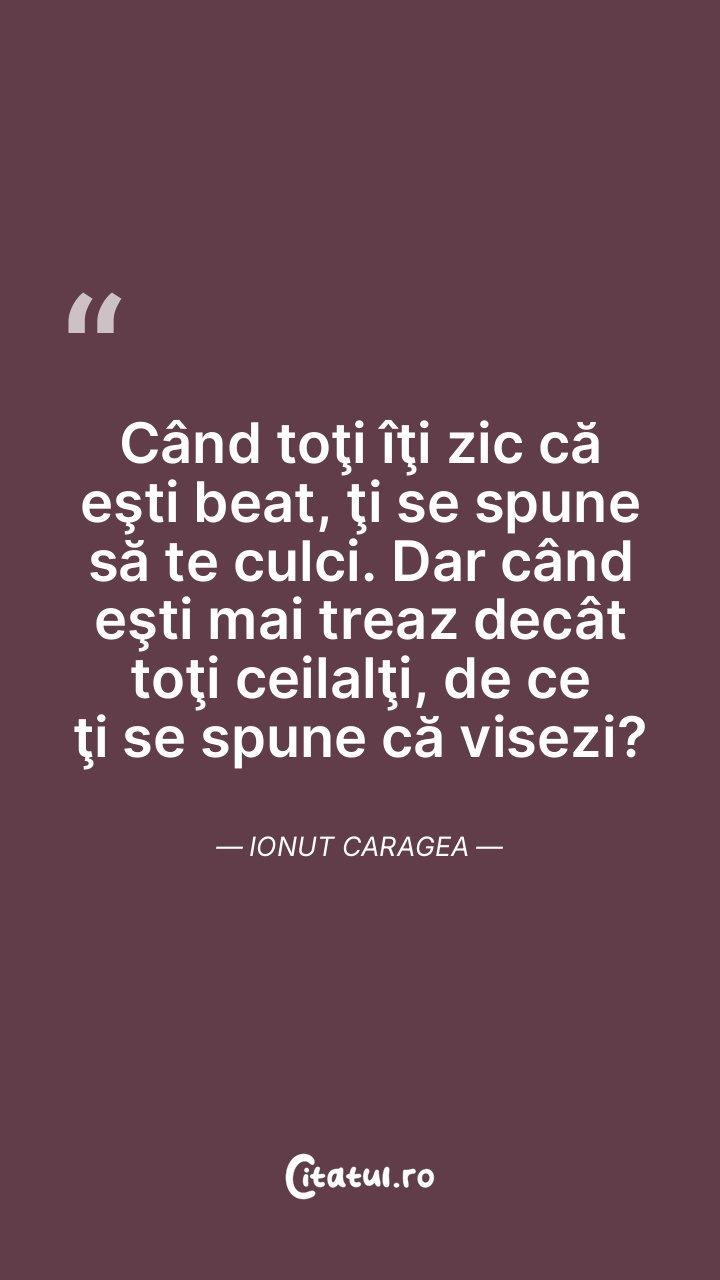 Când toţi îţi zic că eşti beat, ţi se spune să te culci. Dar când eşti mai treaz decât toţi ceilalţi, de ce ţi se spune că visezi? Ionut Caragea