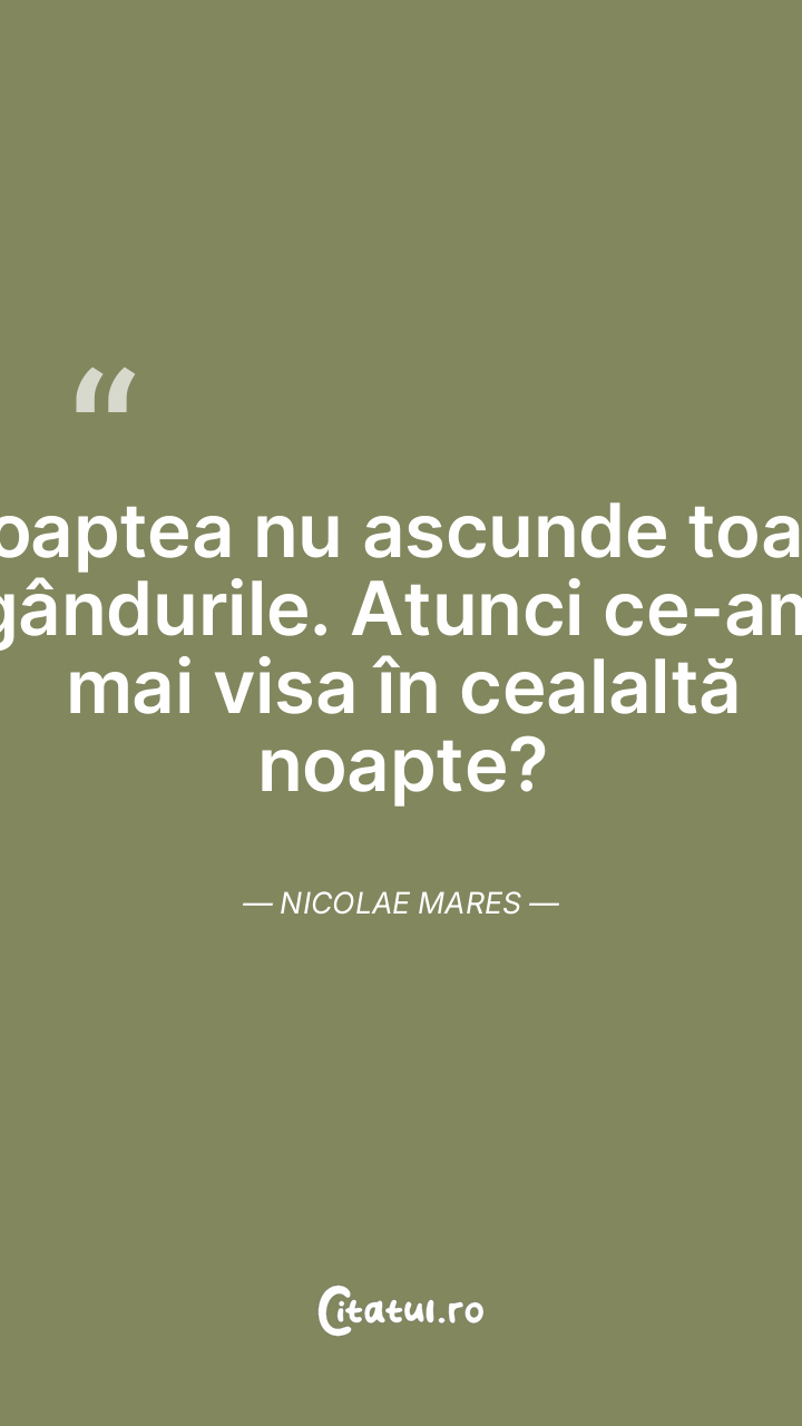 Noaptea nu ascunde toate gândurile. Atunci ce-am mai visa în cealaltă noapte? Nicolae Mares
