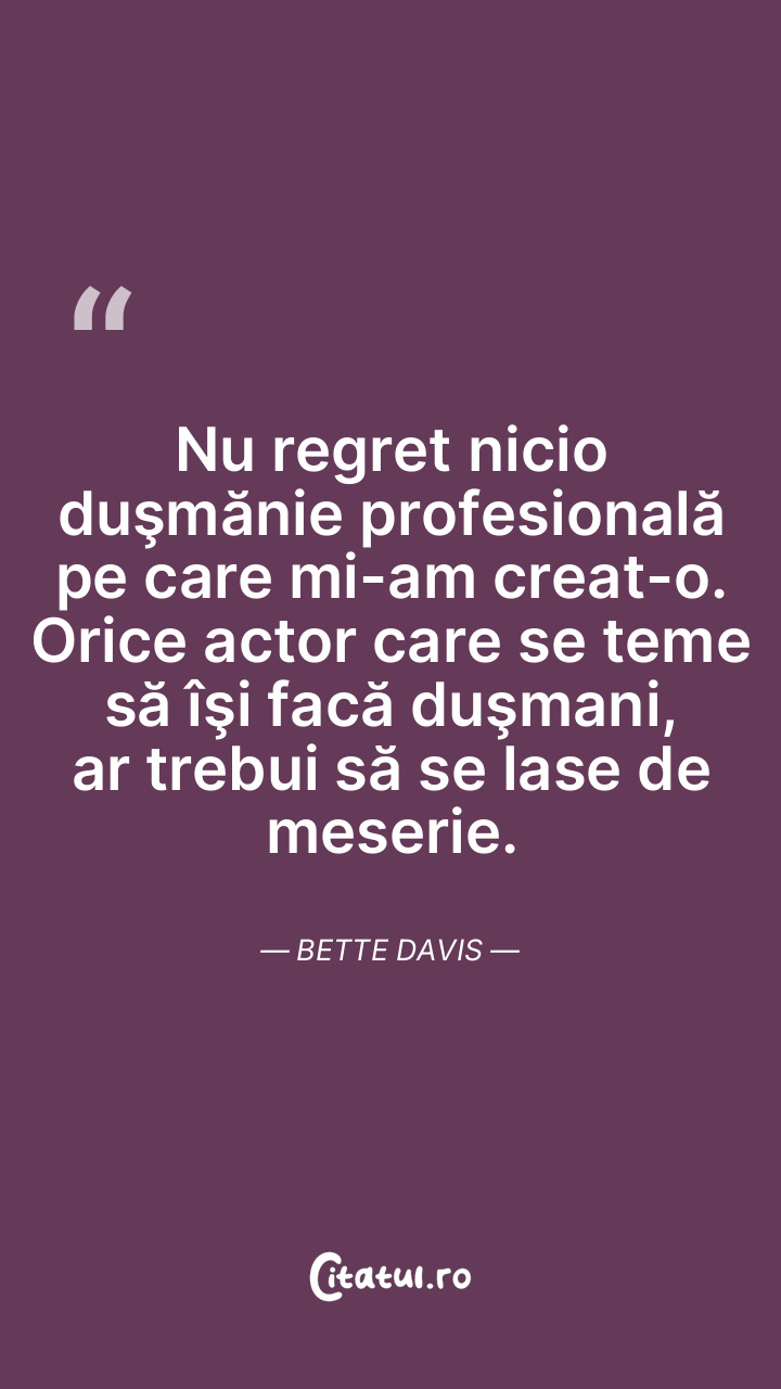 Nu regret nicio duşmănie profesională pe care mi-am creat-o. Orice actor care se teme să îşi facă duşmani, ar trebui să se lase de meserie. Bette Davis