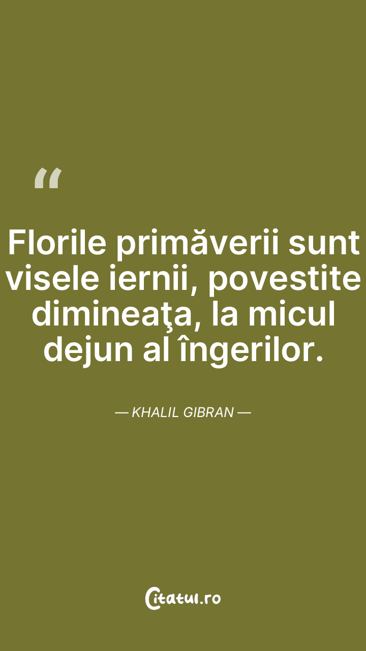 Florile primăverii sunt visele iernii, povestite dimineaţa, la micul dejun al îngerilor. Khalil Gibran