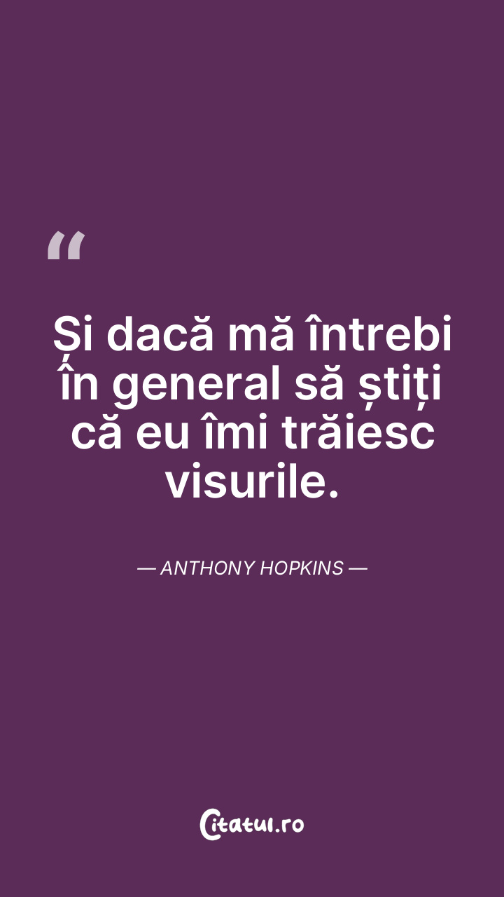 Și dacă mă întrebi în general să știți că eu îmi trăiesc visurile. Anthony Hopkins