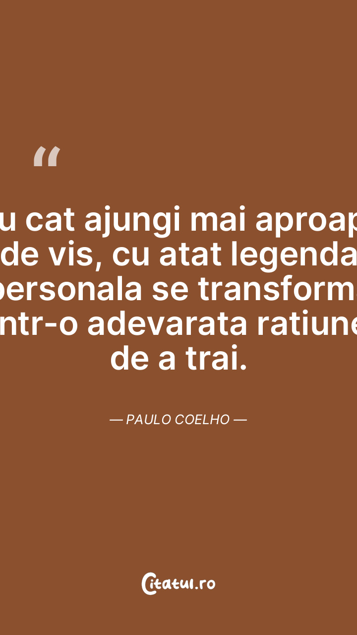 Cu cat ajungi mai aproape de vis, cu atat legenda personala se transforma intr-o adevarata ratiune de a trai. Paulo Coelho