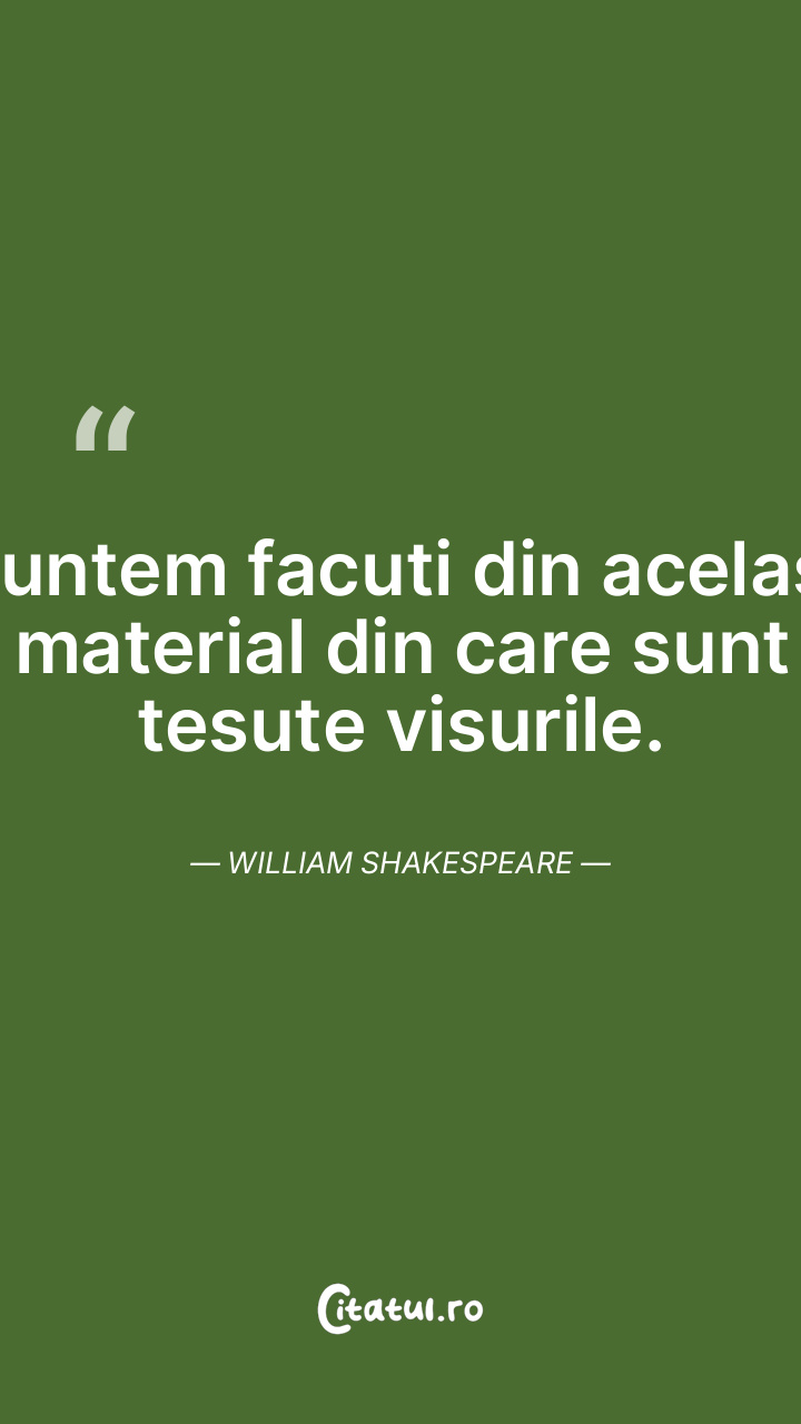 Suntem facuti din acelasi material din care sunt tesute visurile. William Shakespeare