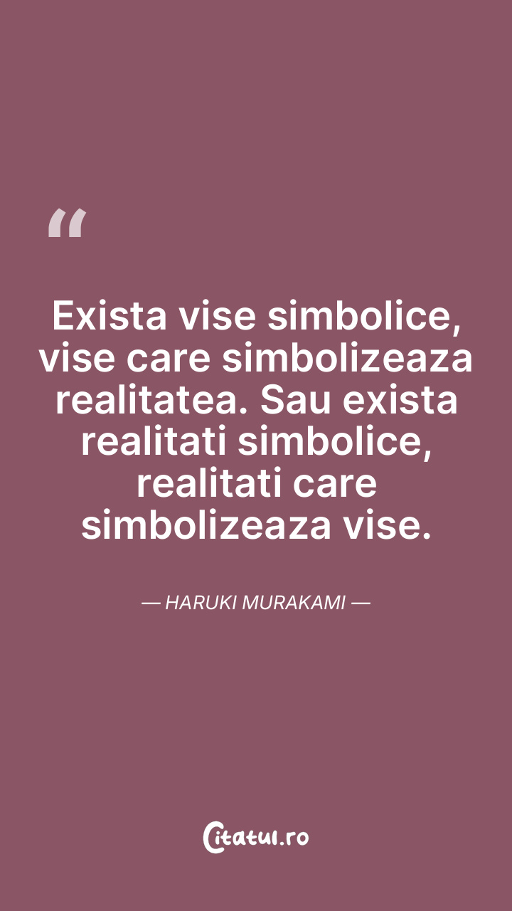 Exista vise simbolice, vise care simbolizeaza realitatea. Sau exista realitati simbolice, realitati care simbolizeaza vise. Haruki Murakami