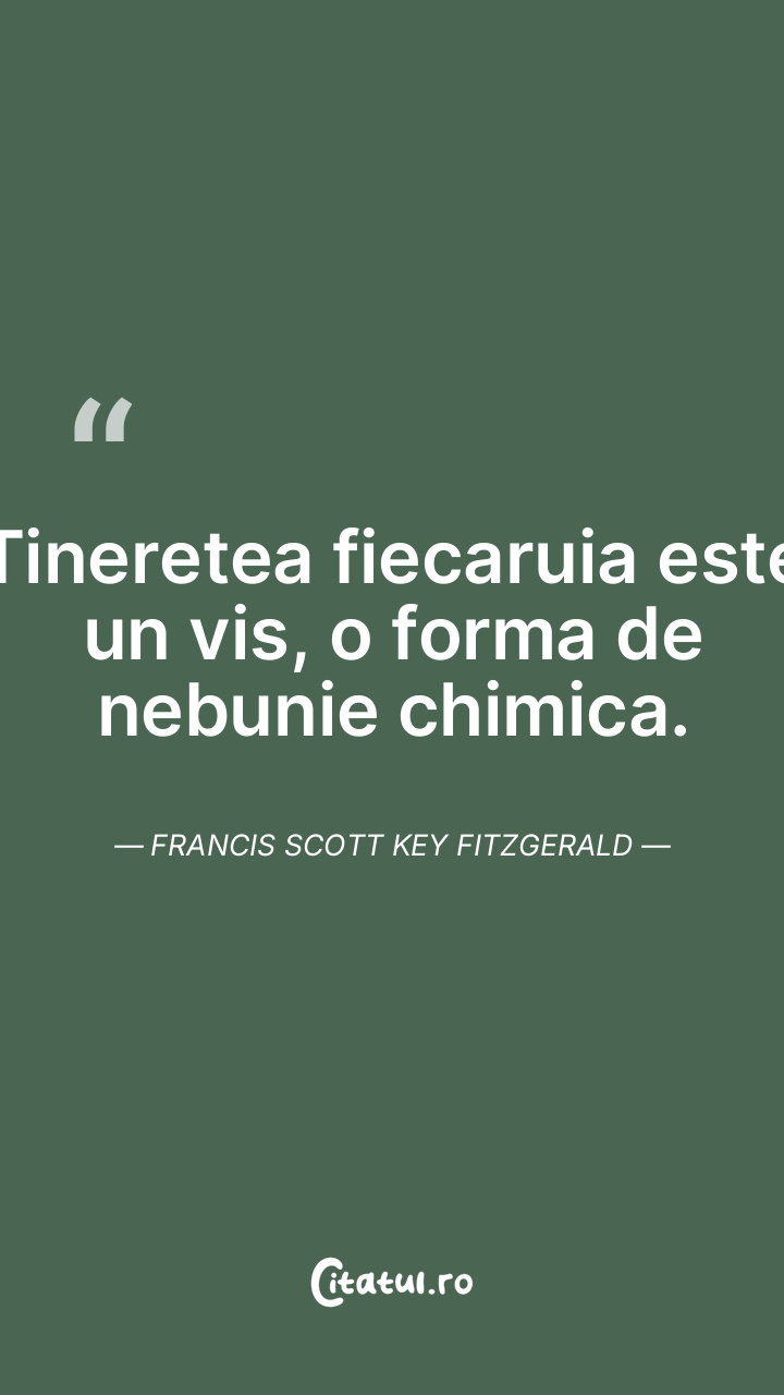 Tineretea fiecaruia este un vis, o forma de nebunie chimica. Francis Scott Key Fitzgerald