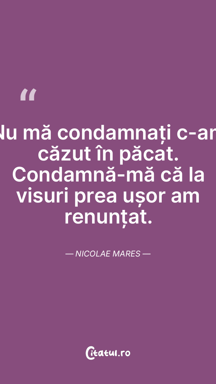 Nu mă condamnați c-am căzut în păcat. Condamnă-mă că la visuri prea ușor am renunțat. Nicolae Mares
