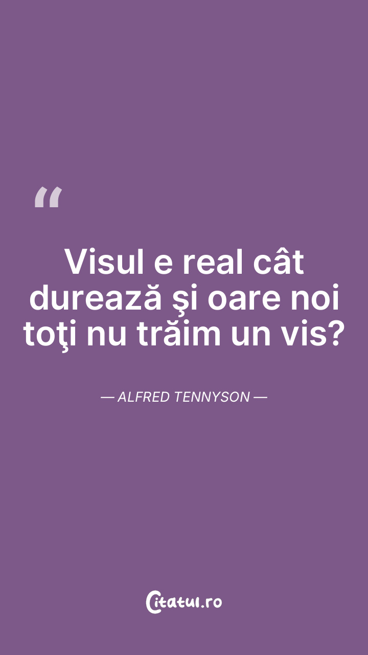 Visul e real cât durează şi oare noi toţi nu trăim un vis? Alfred Tennyson
