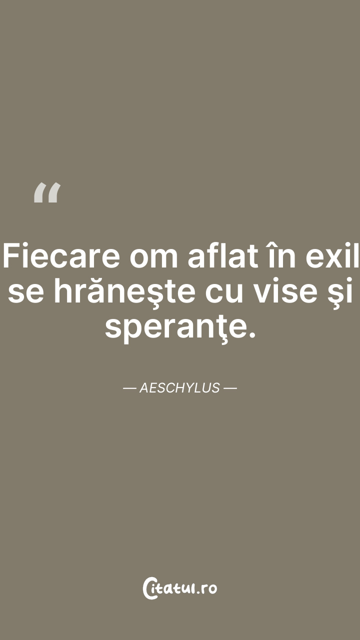 Fiecare om aflat în exil se hrăneşte cu vise şi speranţe. Aeschylus