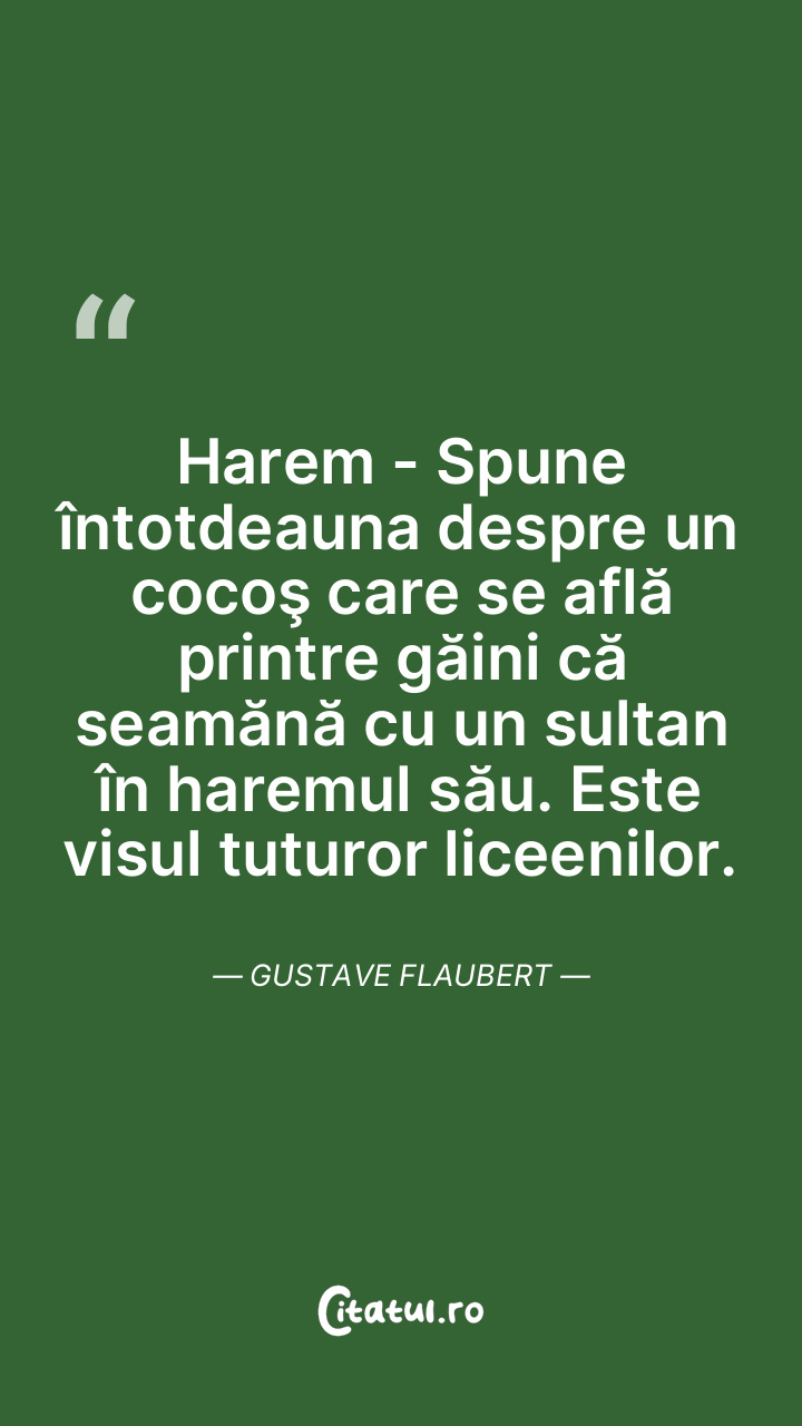 Harem - Spune întotdeauna despre un cocoş care se află printre găini că seamănă cu un sultan în haremul său. Este visul tuturor liceenilor. Gustave Flaubert