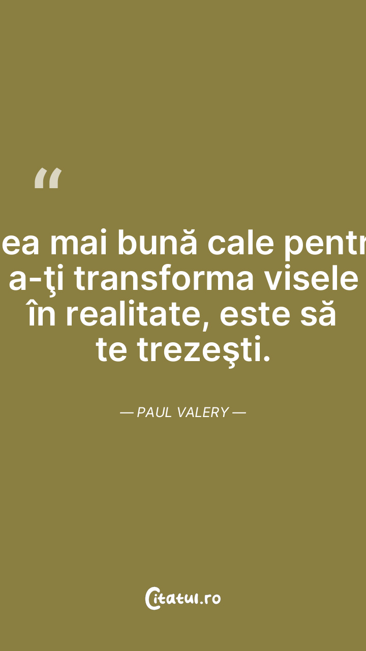 Cea mai bună cale pentru a-ţi transforma visele în realitate, este să te trezeşti. Paul Valery