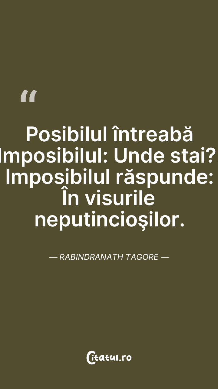 Posibilul întreabă Imposibilul: Unde stai?. Imposibilul răspunde: În visurile neputincioşilor. Rabindranath Tagore