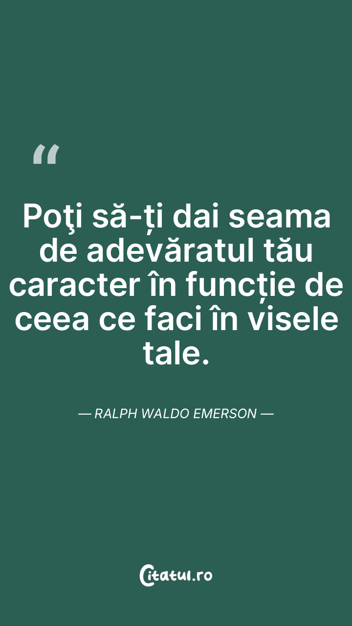 Poţi să-ți dai seama de adevăratul tău caracter în funcție de ceea ce faci în visele tale. Ralph Waldo Emerson