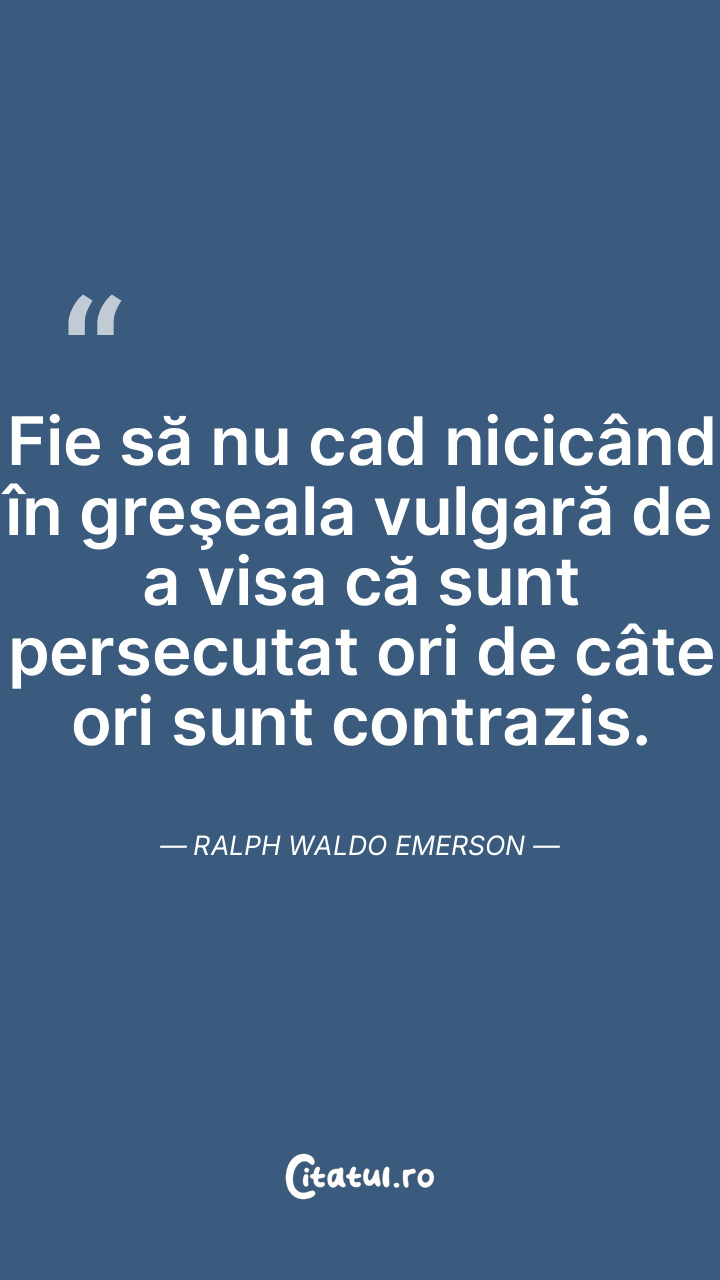 Fie să nu cad nicicând în greşeala vulgară de a visa că sunt persecutat ori de câte ori sunt contrazis. Ralph Waldo Emerson